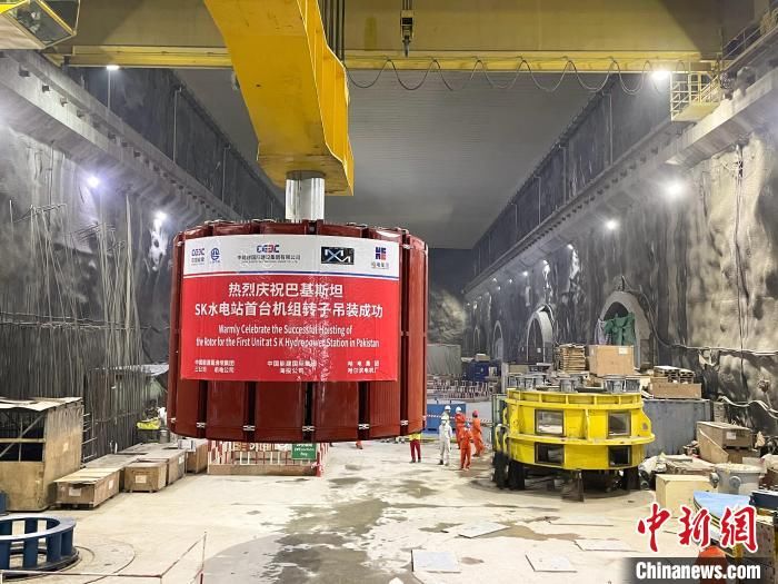 中新网成都9月2日电 (许志夏 张浪)记者2日从中国能建葛洲坝机电公司获悉,北京时间2日12时,由该公司承建的巴基斯坦SK水电站3号机组转子在两台225吨桥机并车抬吊牵引下缓缓离地,经过45分钟的水平移动后平稳落入机坑,与推力头精准对接,标志着全球在建单机容量最大的冲击式水轮发电机组转子成功吊装。